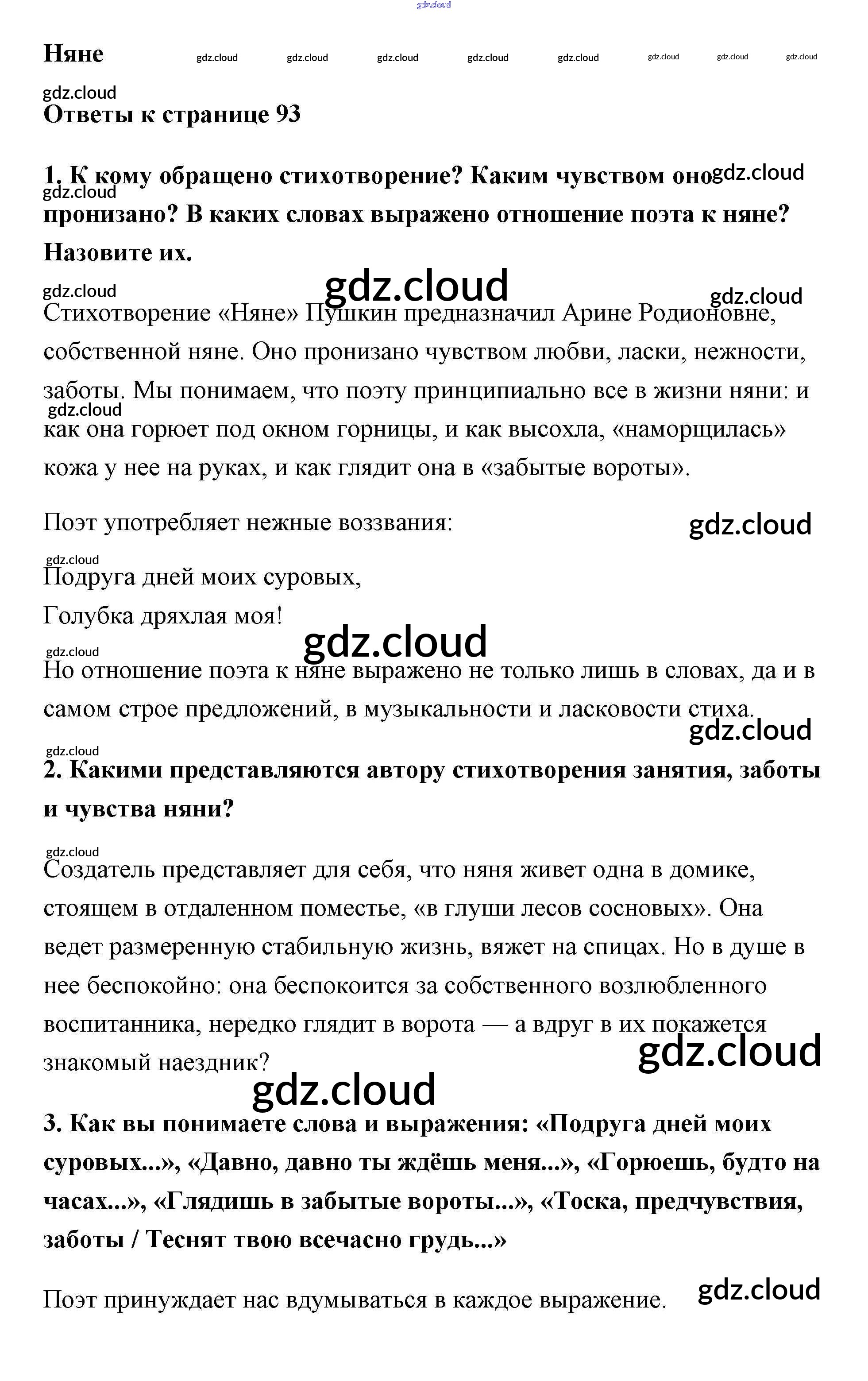 Ответ на задание стр.93 Учебник Литература за 5 (пятый) класс Коровина, Коровин, Журавлев 2016 Часть 1, 2