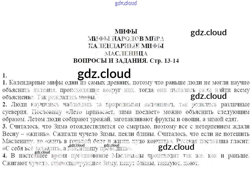 Вопросы и задания на стр. 13-14 Ответы к Части 1 по Литературе 5 класс Учебник-хрестоматия Курдюмова Вертикаль Часть 1, 2 Дрофа