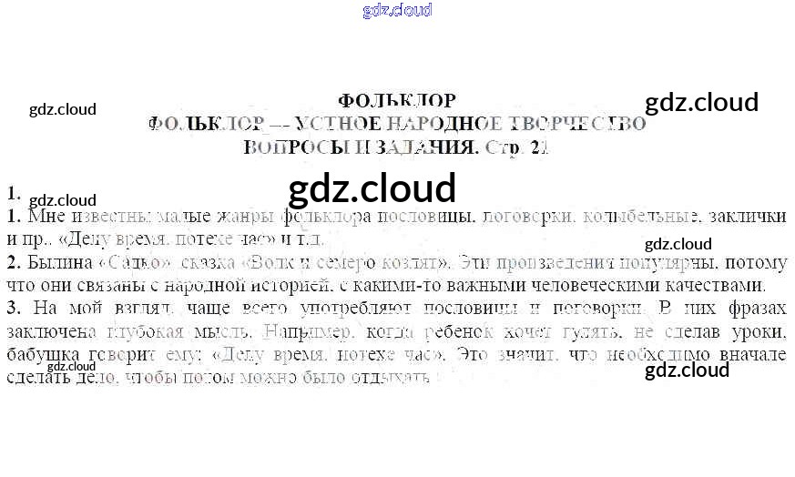 Вопросы и задания на стр. 21 Ответы к Части 1 по Литературе 5 класс Учебник-хрестоматия Курдюмова Вертикаль Часть 1, 2 Дрофа
