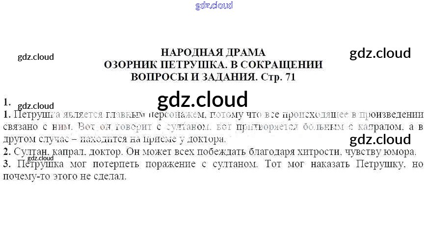 Вопросы и задания на стр. 71 Ответы к Части 1 по Литературе 5 класс Учебник-хрестоматия Курдюмова Вертикаль Часть 1, 2 Дрофа