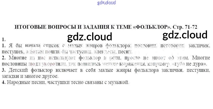 Итоговые вопросы и задания на стр. 71-72 Ответы к Части 1 по Литературе 5 класс Учебник-хрестоматия Курдюмова Вертикаль Часть 1, 2 Дрофа