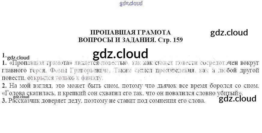 Вопросы и задания на стр. 159 Ответы к Части 1 по Литературе 5 класс Учебник-хрестоматия Курдюмова Вертикаль Часть 1, 2 Дрофа