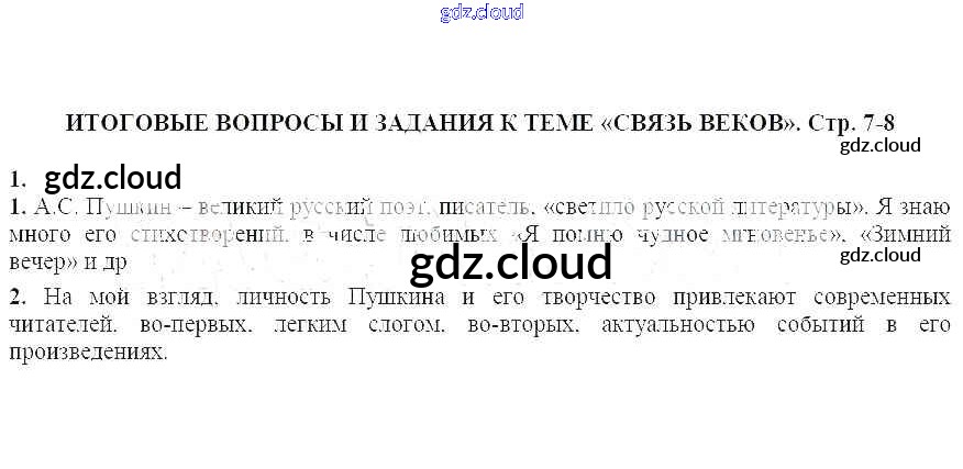 Итоговые вопросы и задания на стр. 7-8 Ответы к Части 2 по Литературе 5 класс Учебник-хрестоматия Курдюмова Вертикаль Часть 1, 2 Дрофа
