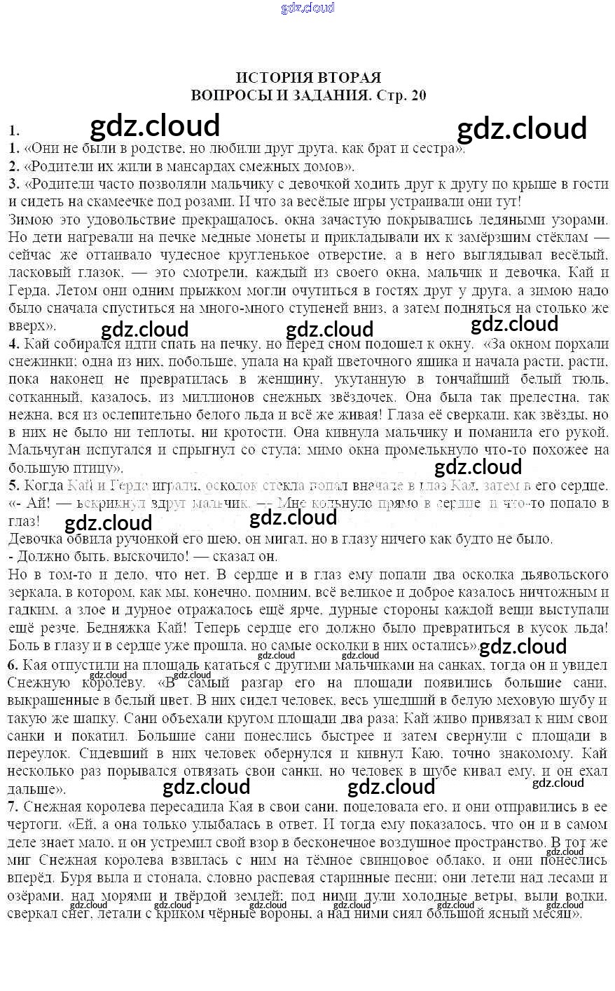 Вопросы и задания на стр. 20 Ответы к Части 2 по Литературе 5 класс Учебник-хрестоматия Курдюмова Вертикаль Часть 1, 2 Дрофа