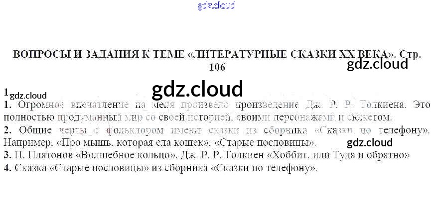 Вопросы и задания на стр. 106 Ответы к Части 2 по Литературе 5 класс Учебник-хрестоматия Курдюмова Вертикаль Часть 1, 2 Дрофа