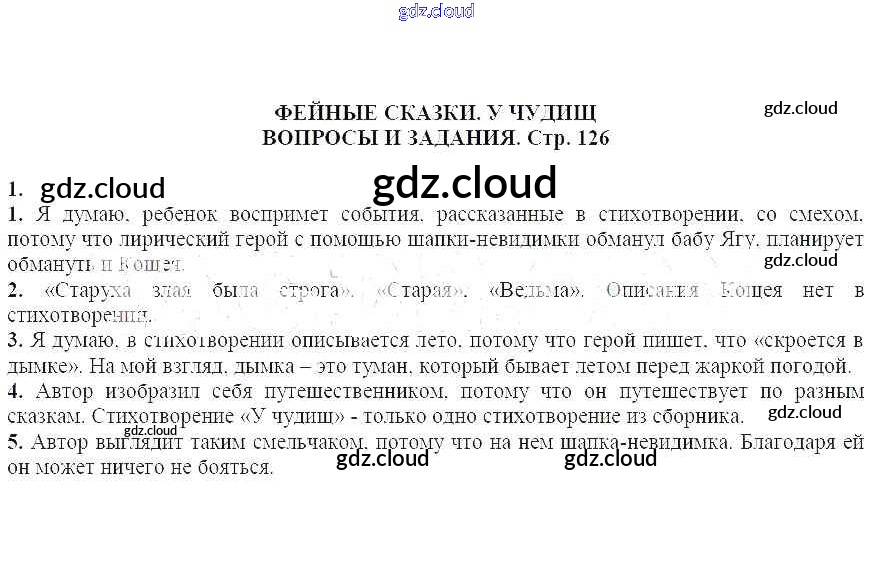 Вопросы и задания на стр. 126 Ответы к Части 2 по Литературе 5 класс Учебник-хрестоматия Курдюмова Вертикаль Часть 1, 2 Дрофа