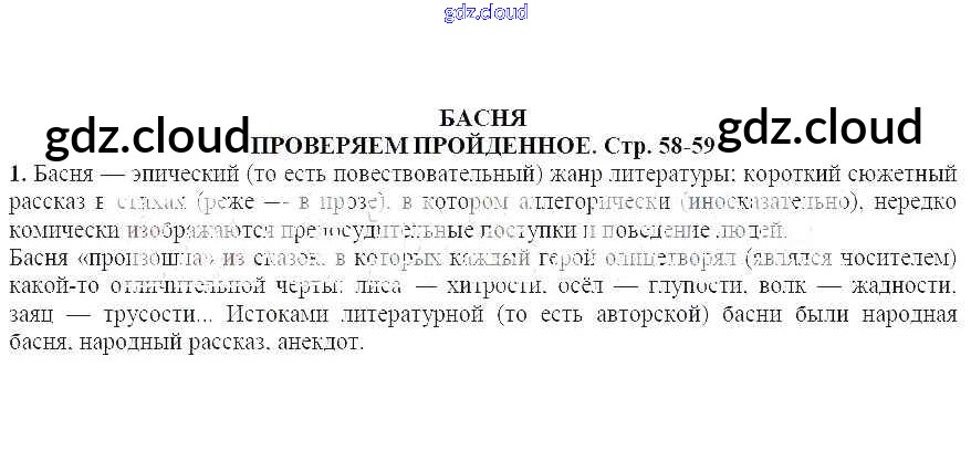 Повторяем пройденное (стр.58-59) Басня по Литературе 5 класс Учебник Ланин Часть 1, 2 Вентана-граф