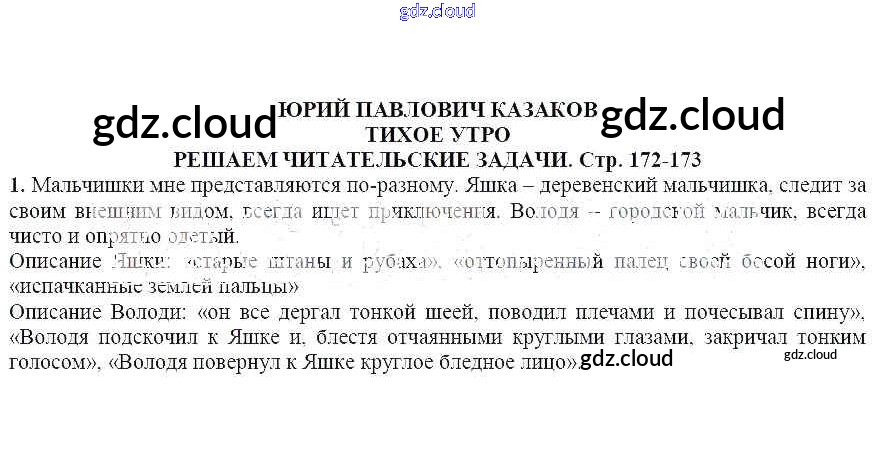 Решаем читательские задачи (стр.172-173) Юрий Павлович Казаков. Тихое утро по Литературе 5 класс Учебник Ланин Часть 1, 2 Вентана-граф