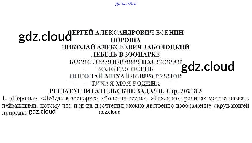 Решаем читательские задачи (стр.302-303) С.А.Есенин, Н.А.Заболоцкий, Б.Л.Пастернак, Н.М.Рубцов по Литературе 5 класс Учебник Ланин Часть 1, 2 Вентана-граф