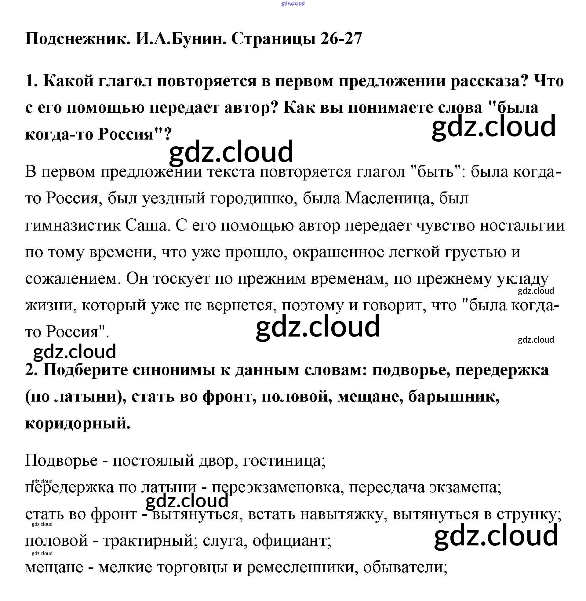 И. А. Бунин Ответы к Части 2 (страницы) по Литературе 5 класс Учебник Меркин Инновационная школа Часть 1, 2 Русское слово