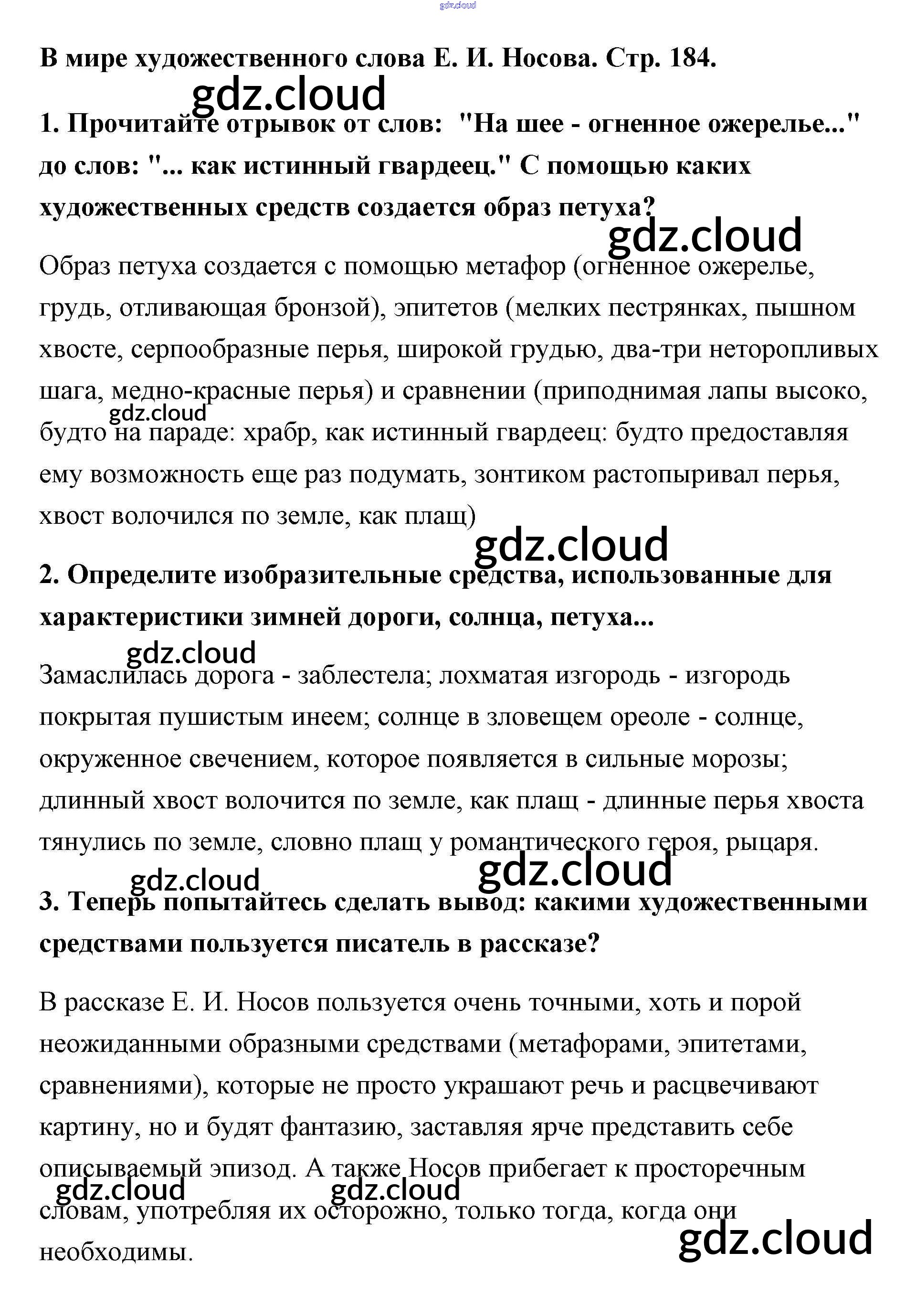 Е. И. Носов Ответы к Части 2 (страницы) по Литературе 5 класс Учебник Меркин Инновационная школа Часть 1, 2 Русское слово
