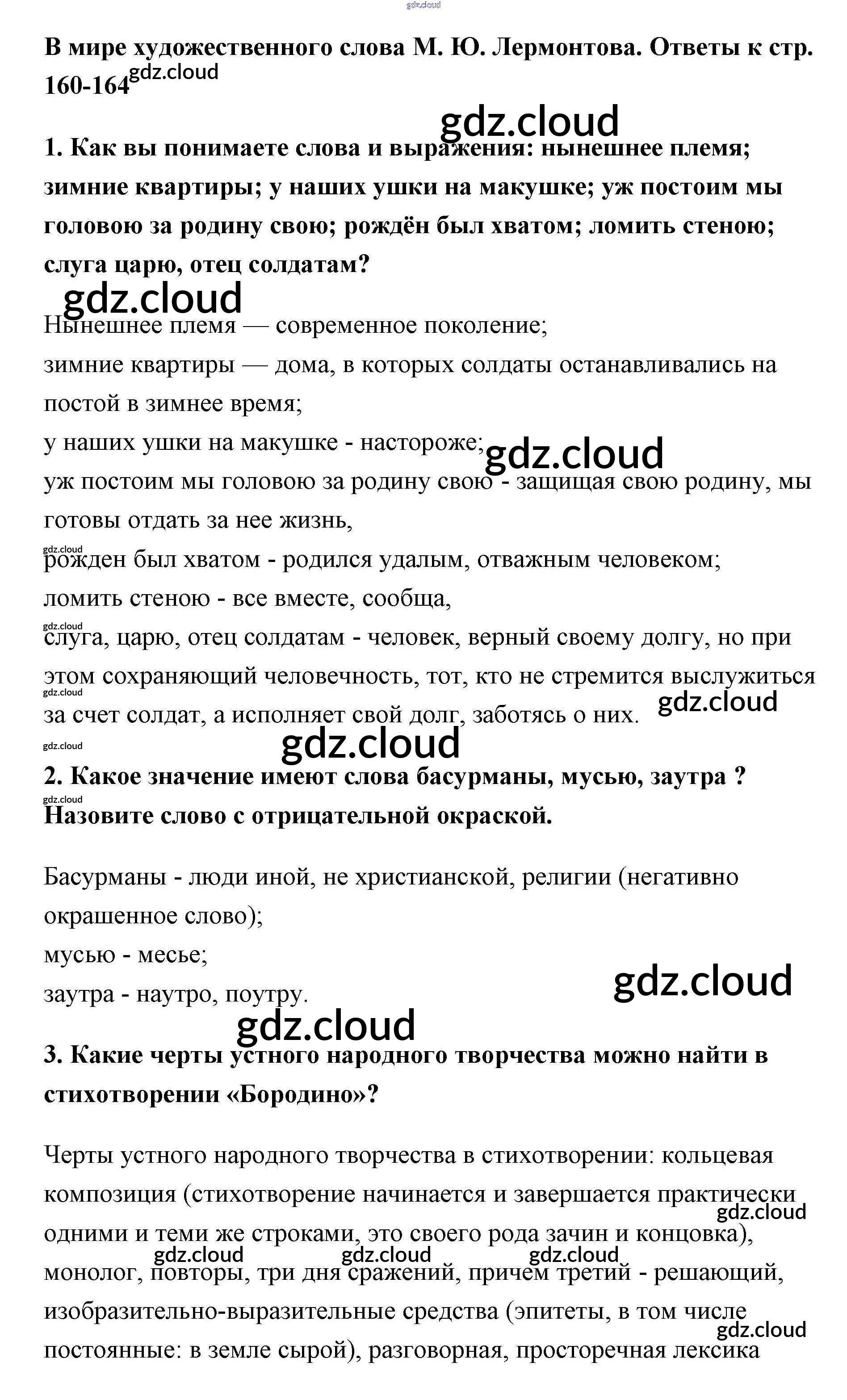 Ответ на задание стр.160 Учебник Литература за 5 (пятый) класс Меркин Инновационная школа 2016 Часть 1, 2