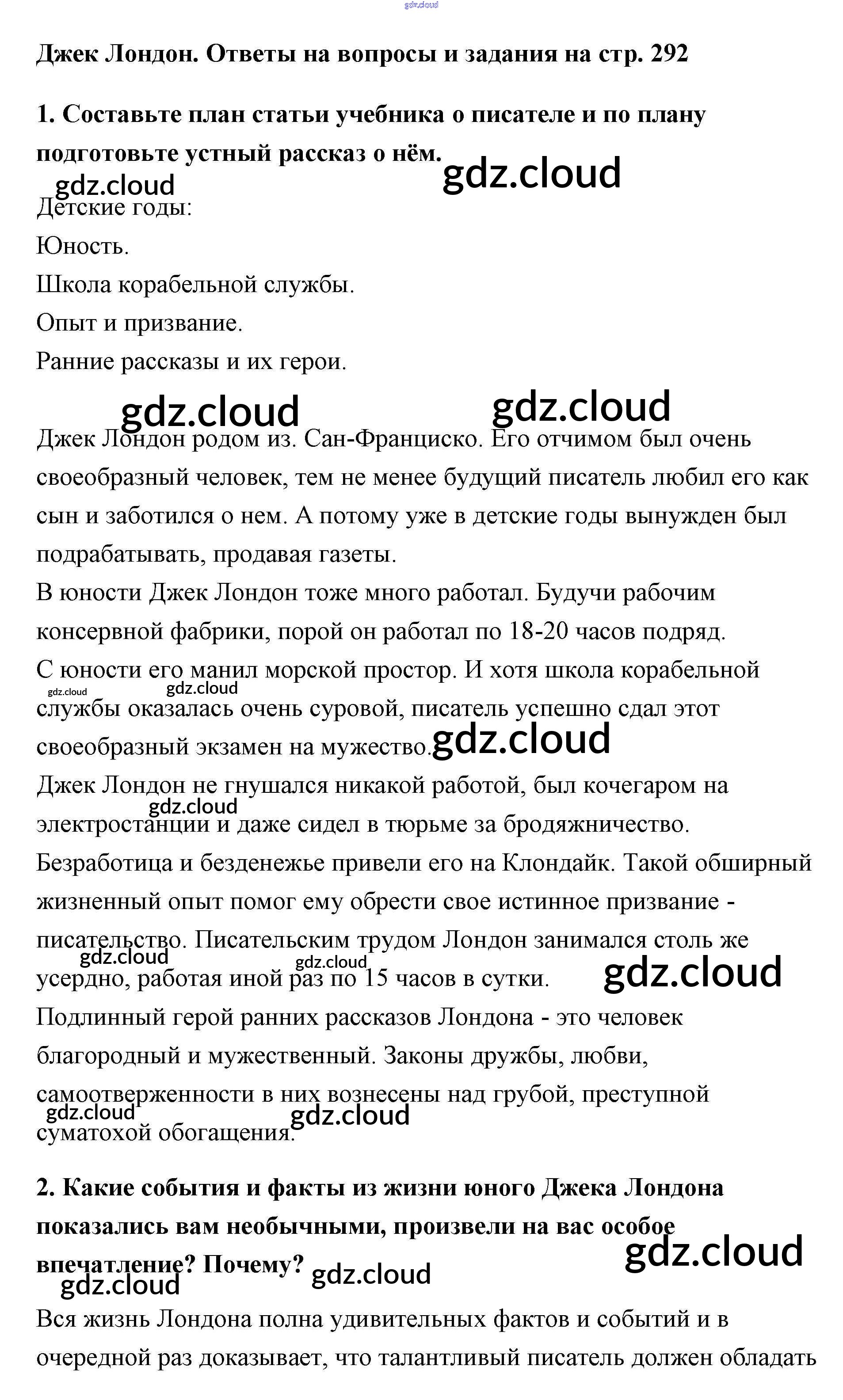 Джек Лондон Ответы к Части 2 (страницы) по Литературе 5 класс Учебник Меркин Инновационная школа Часть 1, 2 Русское слово