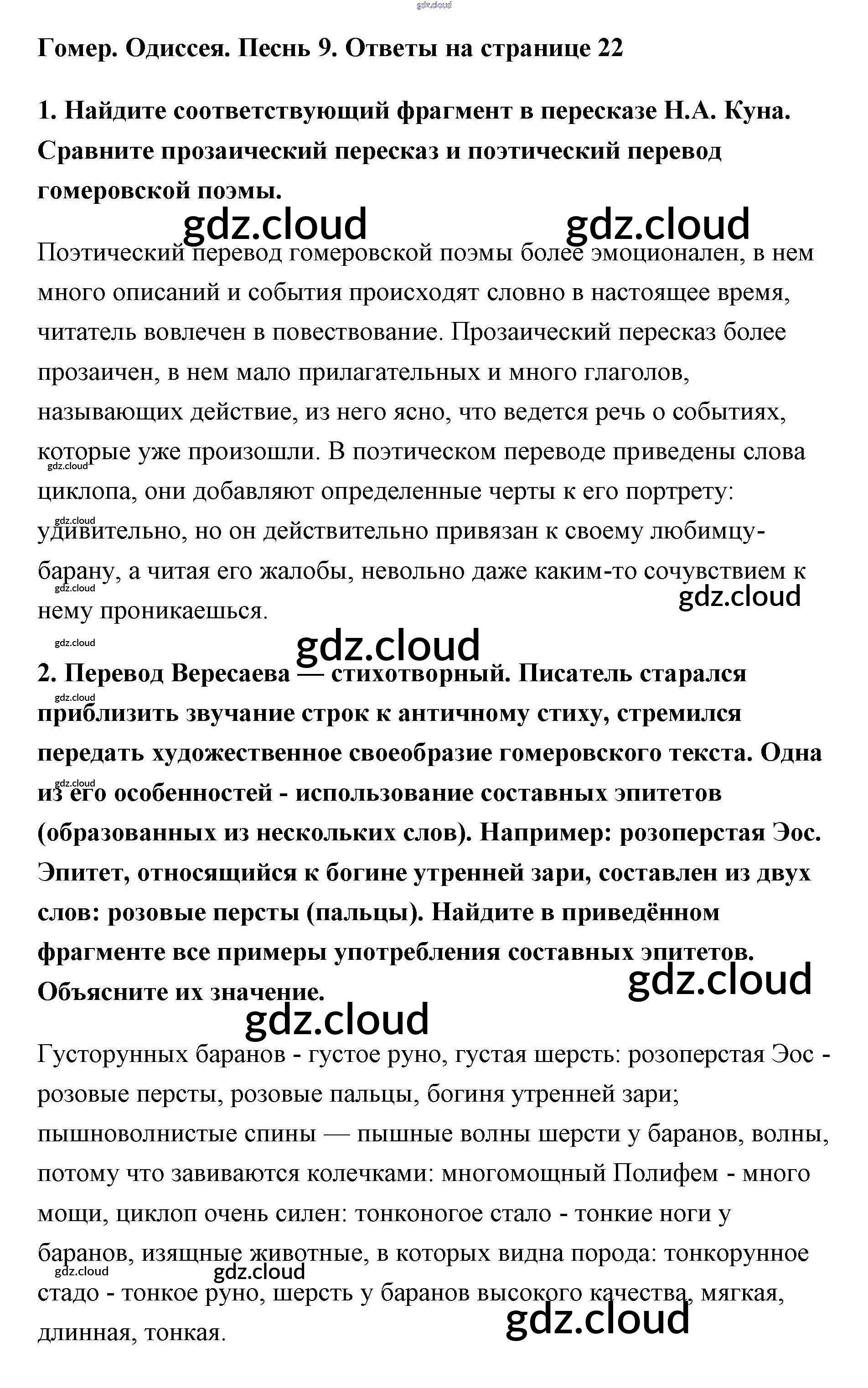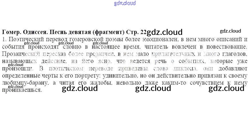 Ответ на задание стр.22 Учебник Литература за 5 (пятый) класс Меркин Инновационная школа 2016 Часть 1, 2