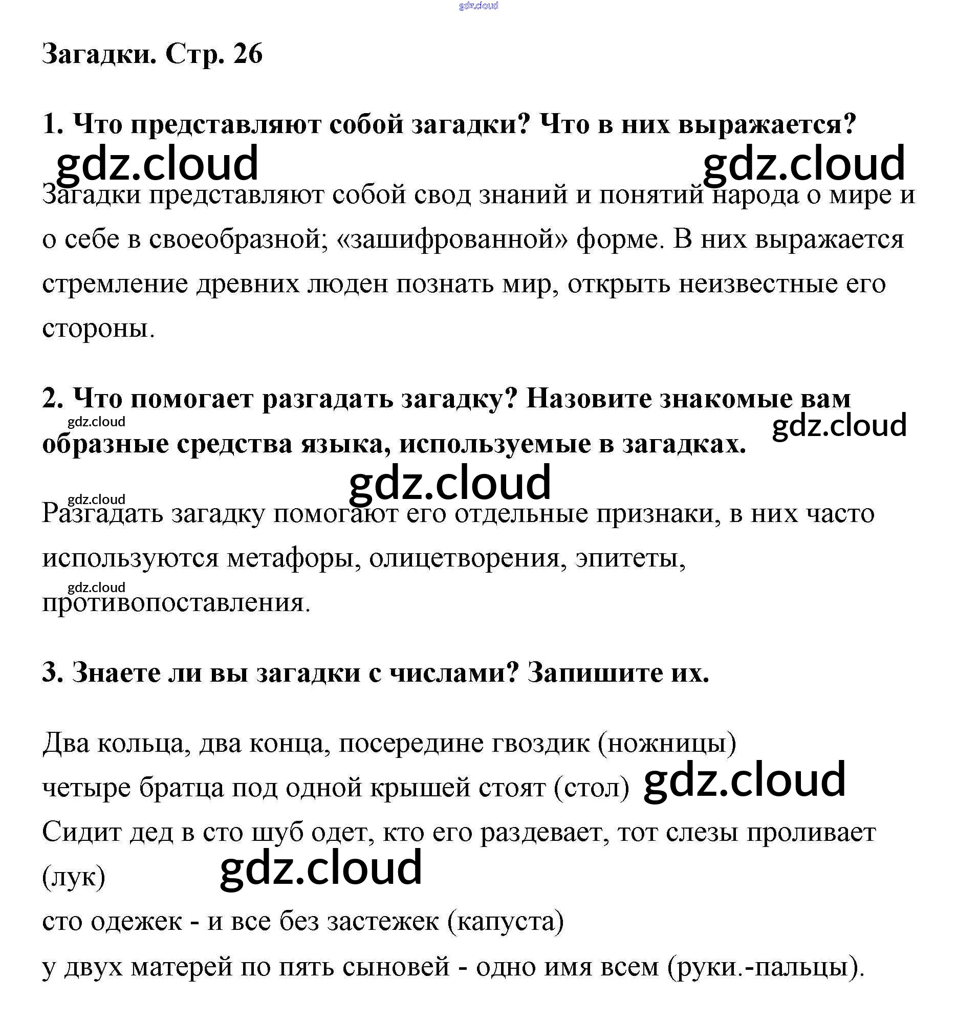 Ответ на задание стр.26 Учебник Литература за 5 (пятый) класс Меркин Инновационная школа 2016 Часть 1, 2