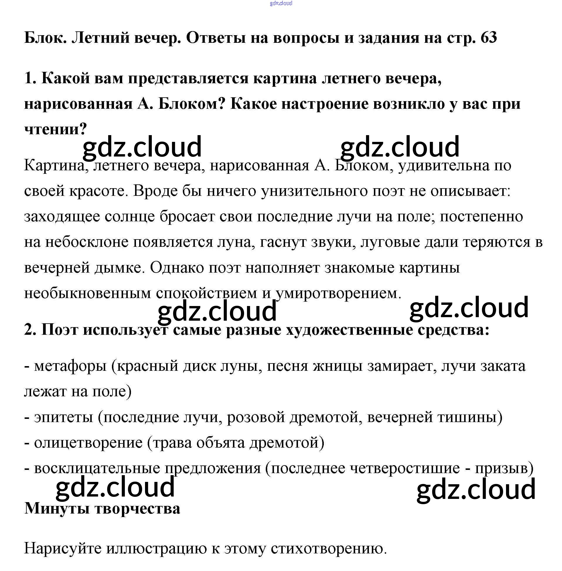 А. А. Блок Ответы к Части 2 (страницы) по Литературе 5 класс Учебник Меркин Инновационная школа Часть 1, 2 Русское слово