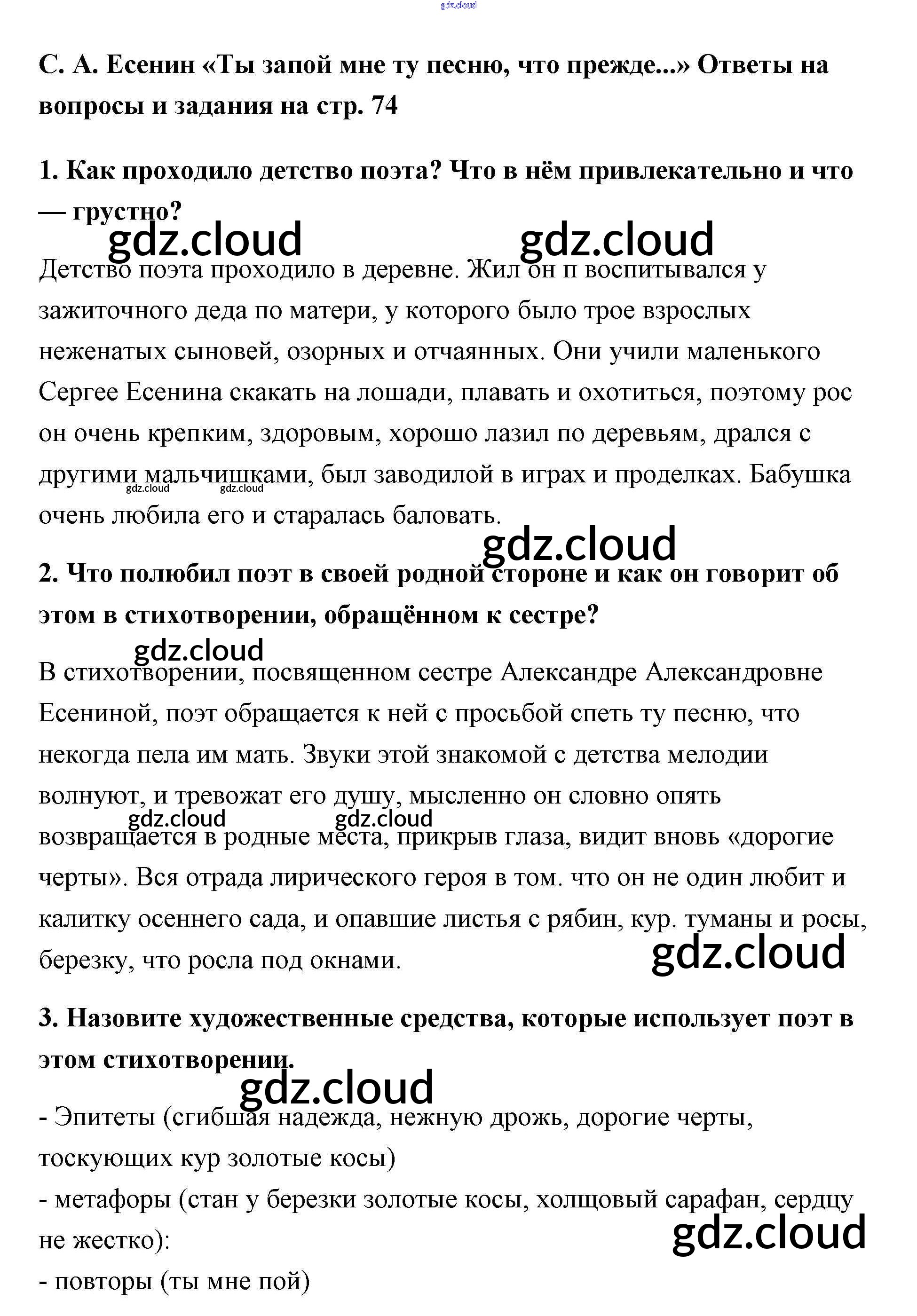 Ответ на задание 74 Учебник Литература за 5 (пятый) класс Меркин Инновационная школа 2016 Часть 1, 2