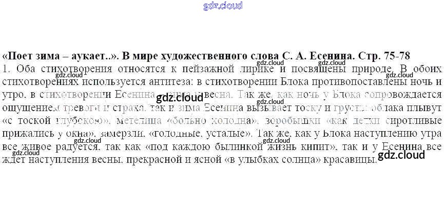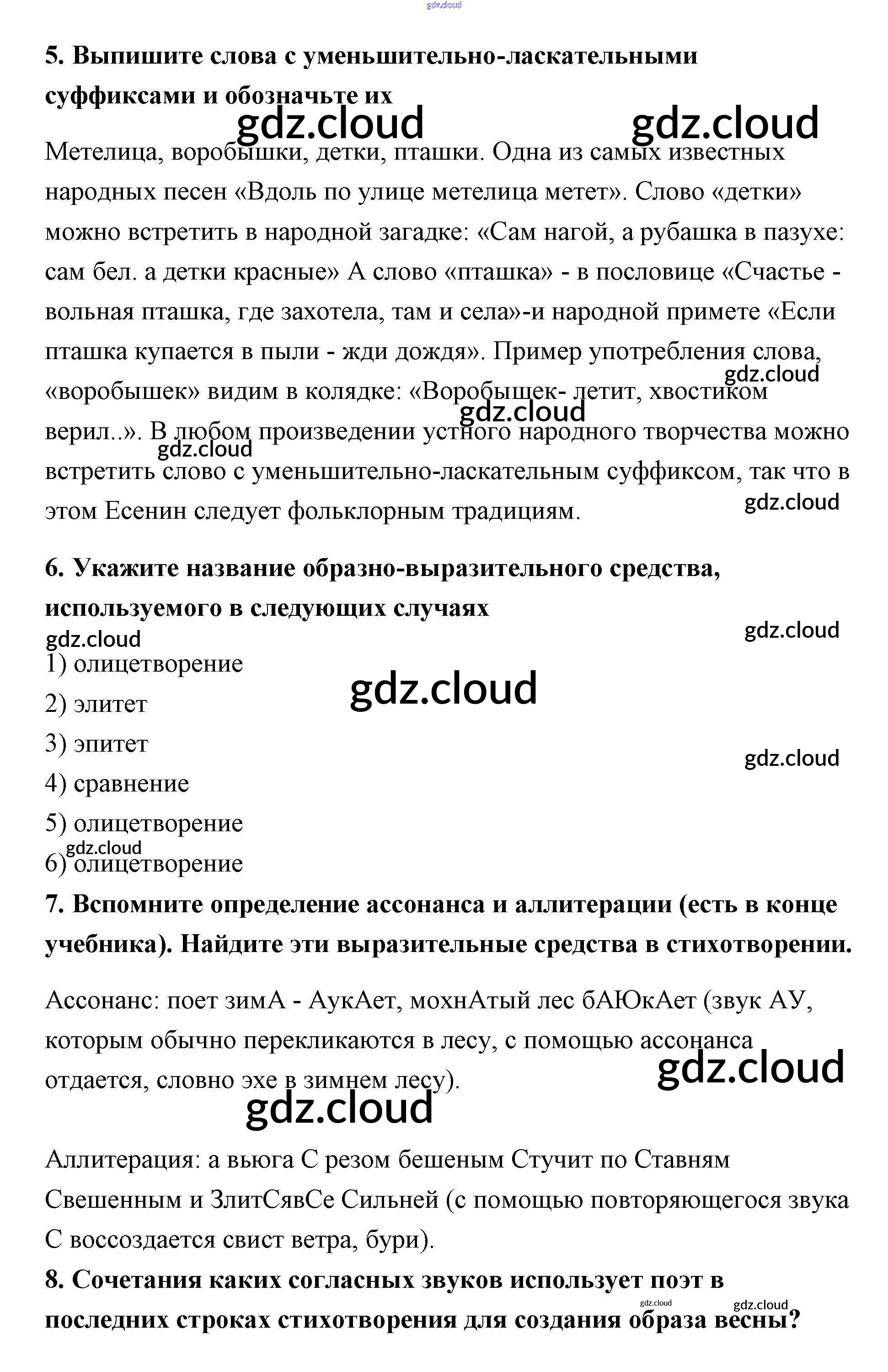 С. А. Есенин Ответы к Части 2 (страницы) по Литературе 5 класс Учебник Меркин Инновационная школа Часть 1, 2 Русское слово