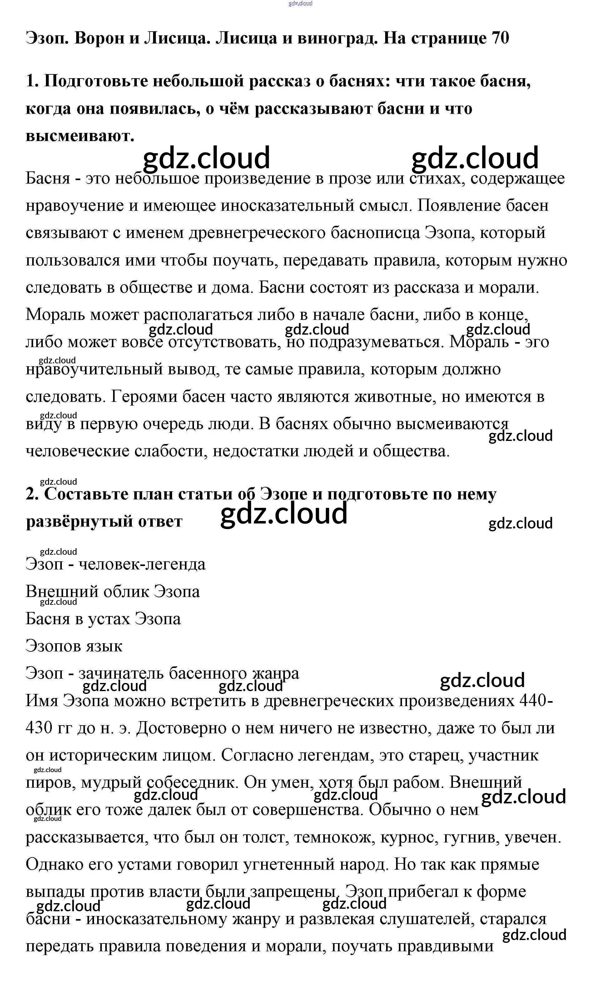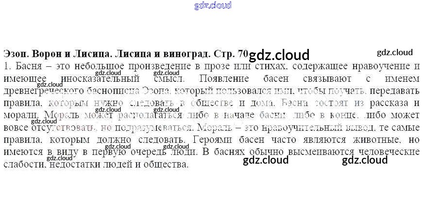 Ответ на задание стр.70 Учебник Литература за 5 (пятый) класс Меркин Инновационная школа 2016 Часть 1, 2
