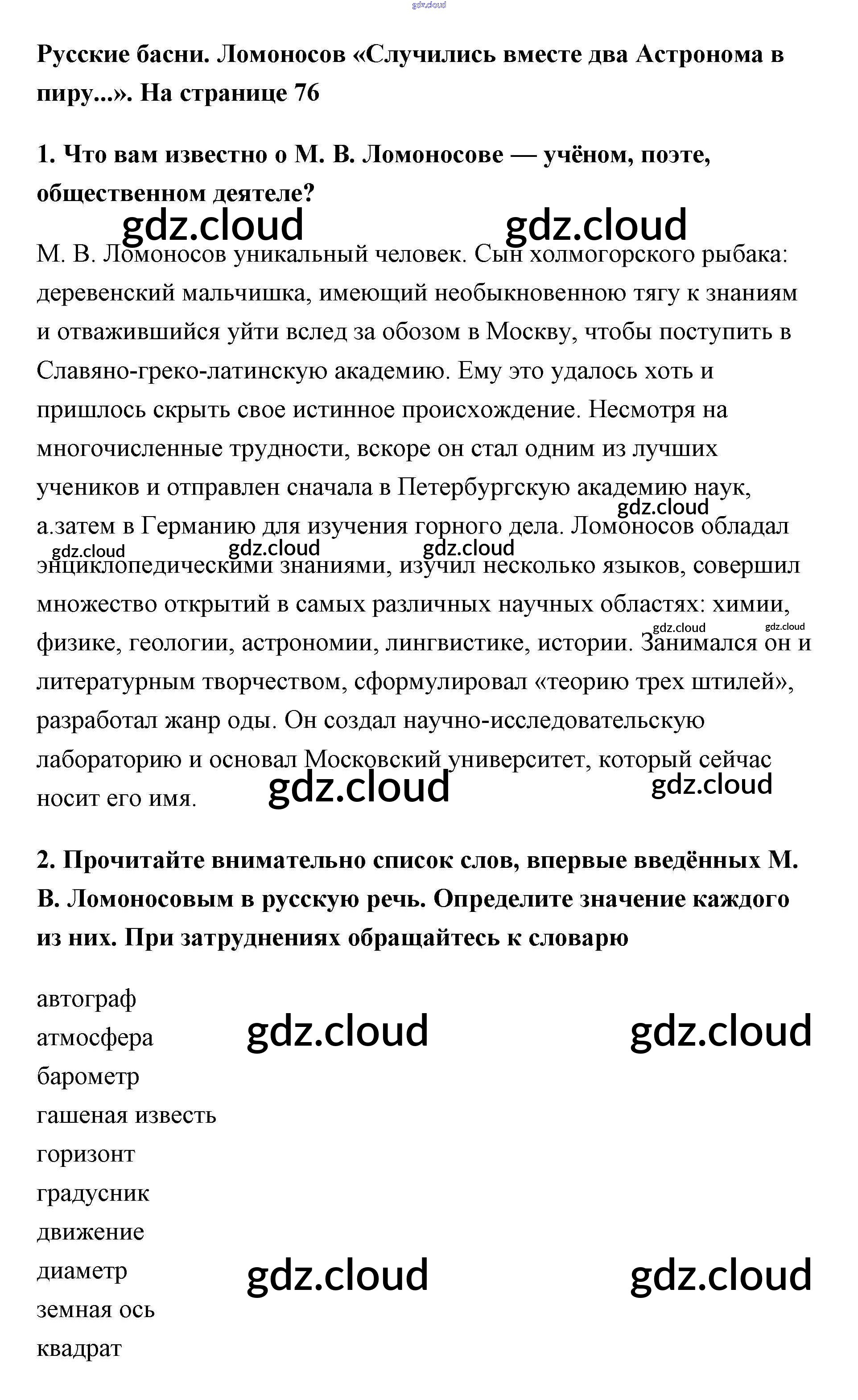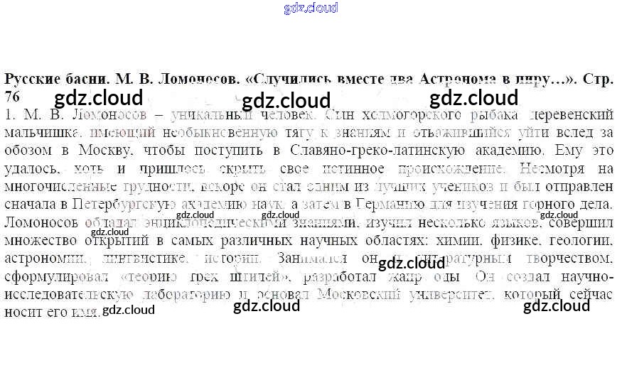 Ответ на задание стр.76 Учебник Литература за 5 (пятый) класс Меркин Инновационная школа 2016 Часть 1, 2