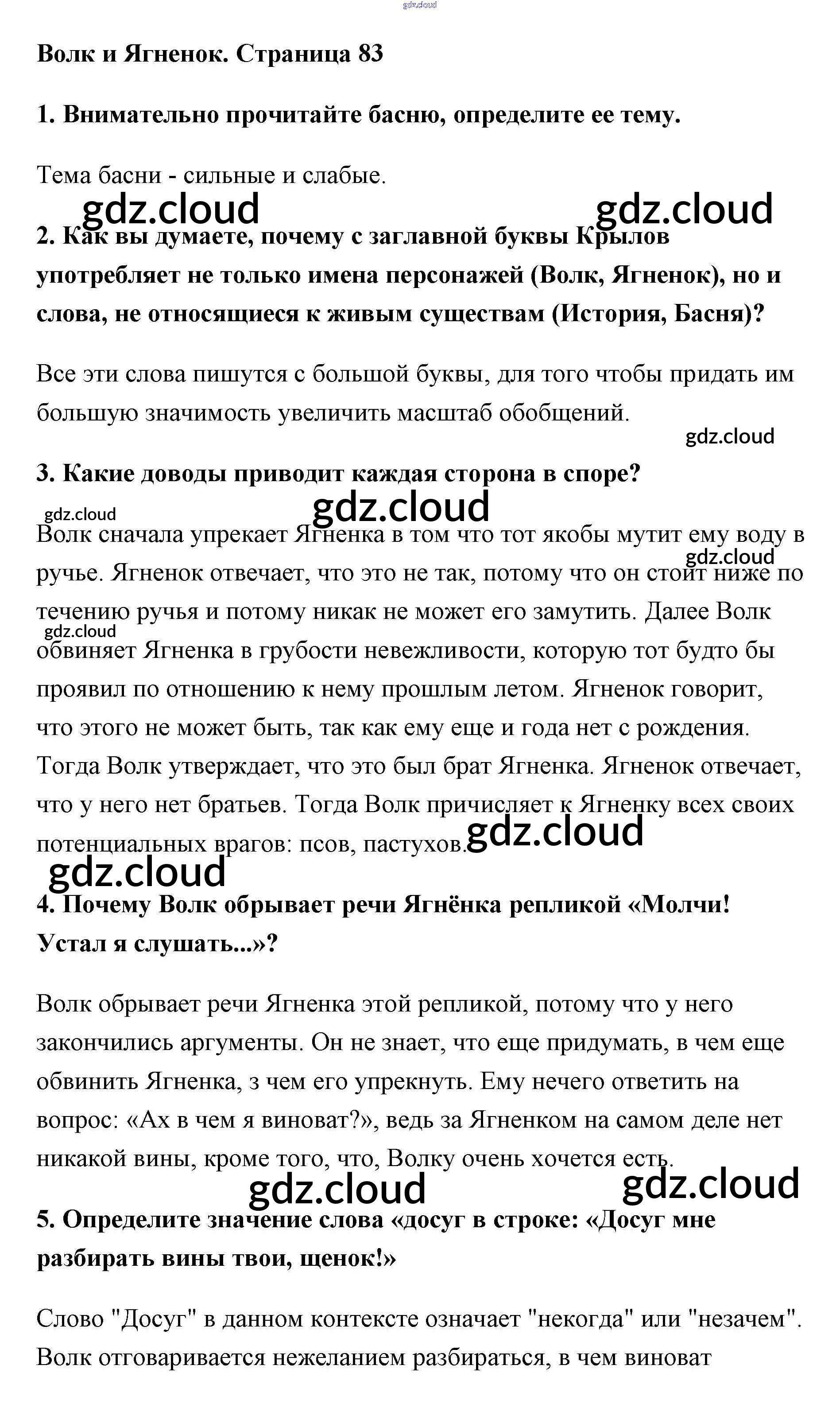 Ответ на задание стр.83 Учебник Литература за 5 (пятый) класс Меркин Инновационная школа 2016 Часть 1, 2