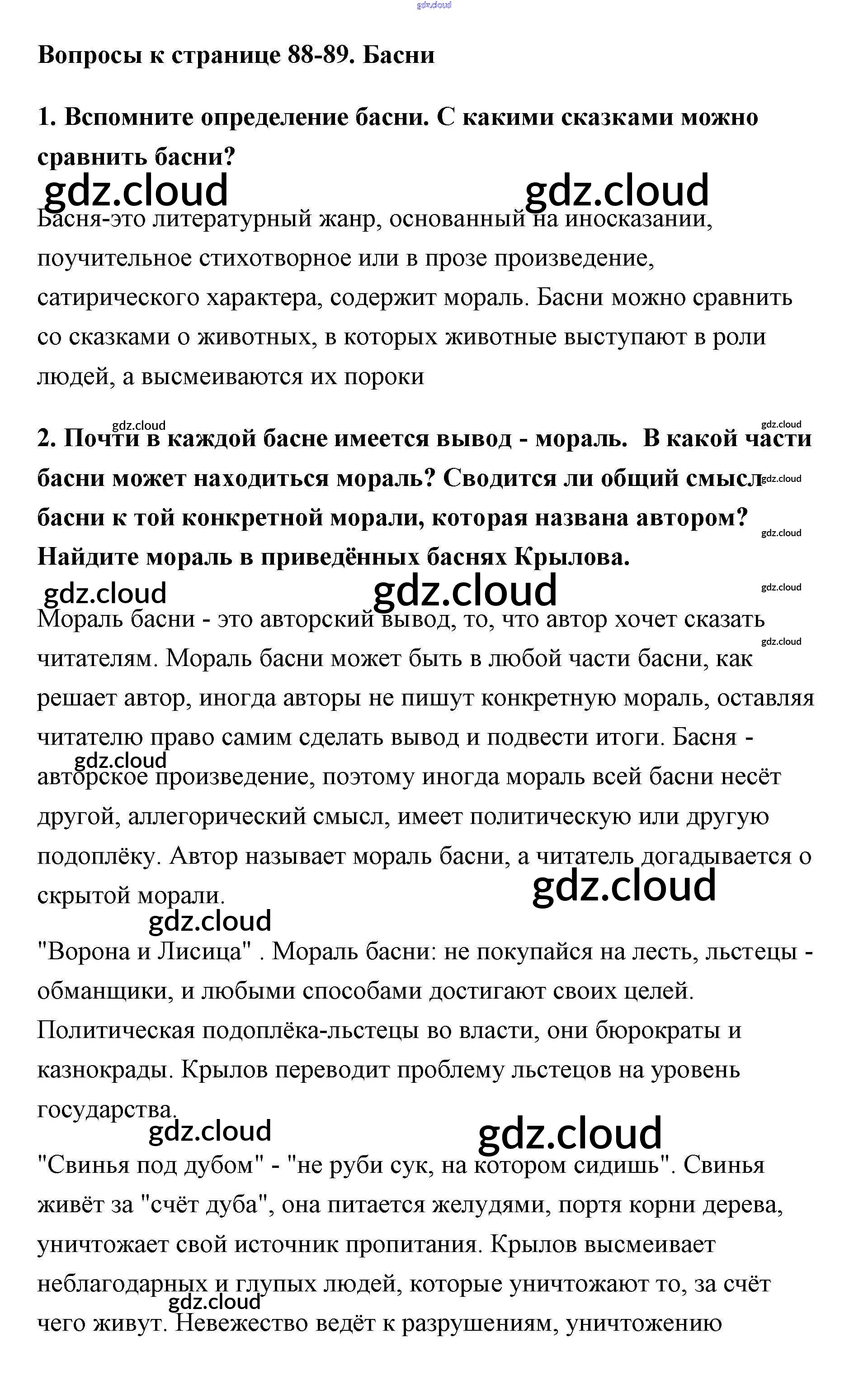 Ответ на задание стр.88 Учебник Литература за 5 (пятый) класс Меркин Инновационная школа 2016 Часть 1, 2