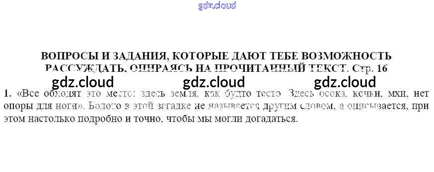 часть 1 / Загадки / Вопросы и задания, которые дают тебе возможность рассуждать, опираясь на прочитанный текст (стр. 16) / 1
