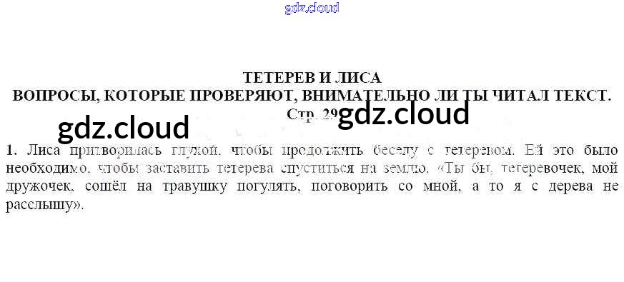 Вопросы, которые проверяют, внимательно ли ты читал текст (стр. 29) Тетерев и лиса по Литературе 5 класс Учебник Москвин Алгоритм успеха Часть 1, 2 Вентана-граф