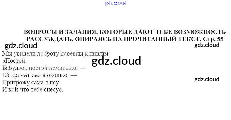 Ответ на задание Вопросы и задания, которые дают тебе возможность рассуждать, опираясь на прочитанный текст (стр. 55) Учебник Литература за 5 (пятый) класс Москвин Алгоритм успеха 2020 Часть 1, 2