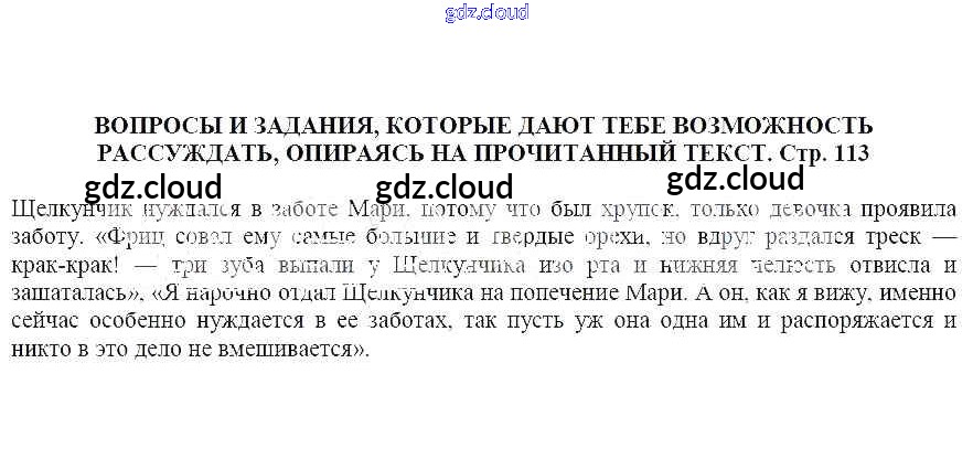 часть 1 / Щелкунчик и мышиный король / Вопросы и задания, которые дают тебе возможность рассуждать, опираясь на прочитанный текст (стр. 113)