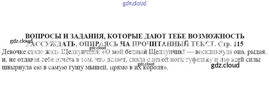 часть 1 / Щелкунчик и мышиный король / Вопросы и задания, которые дают тебе возможность рассуждать, опираясь на прочитанный текст (стр. 115)