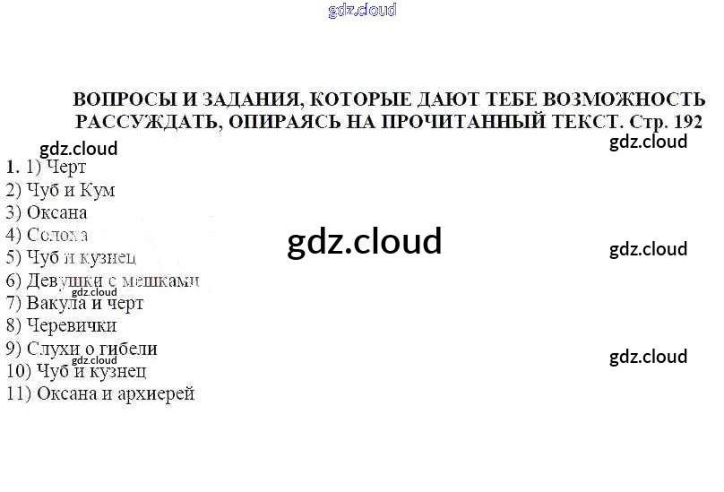 Вопросы и задания, которые дают тебе возможность рассуждать, опираясь на прочитанный текст (стр. 192) Ночь перед Рождеством по Литературе 5 класс Учебник Москвин Алгоритм успеха Часть 1, 2 Вентана-граф