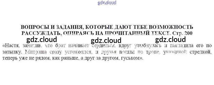 часть 1 / Кладовая солнца / Вопросы и задания, которые дают тебе возможность рассуждать, опираясь на прочитанный текст (стр. 200)
