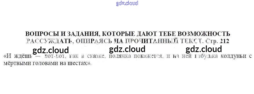 часть 1 / Кладовая солнца / Вопросы и задания, которые дают тебе возможность рассуждать, опираясь на прочитанный текст (стр. 212)