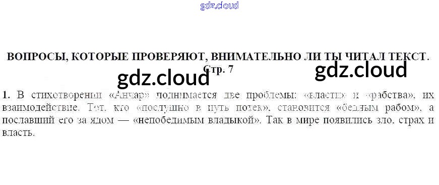 Вопросы, которые проверяют, внимательно ли ты читал текст (стр. 7) Анчар — философская легенда А.С. Пушкина по Литературе 5 класс Учебник Москвин Алгоритм успеха Часть 1, 2 Вентана-граф