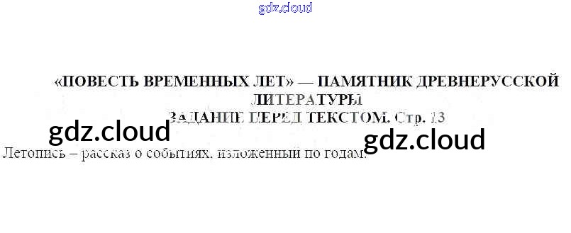 часть 2 / Повесть временных лет — памятник древнерусской литературы / Задание перед текстом (стр. 13)