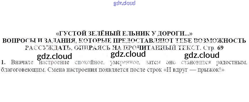 Вопросы и задания, которые дают тебе возможность рассуждать, опираясь на прочитанный текст (стр. 69) Густой зелёный ельник у дороги по Литературе 5 класс Учебник Москвин Алгоритм успеха Часть 1, 2 Вентана-граф