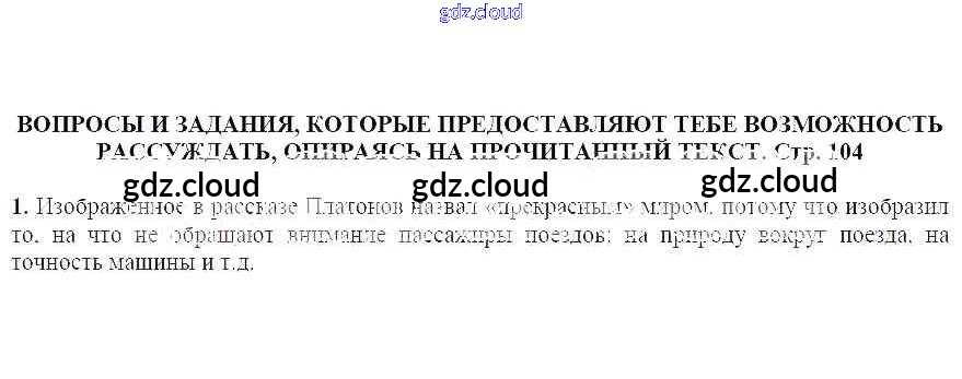 Вопросы и задания, которые дают тебе возможность рассуждать, опираясь на прочитанный текст (стр. 104) В прекрасном и яростном мире (машинист Мальцев) по Литературе 5 класс Учебник Москвин Алгоритм успеха Часть 1, 2 Вентана-граф
