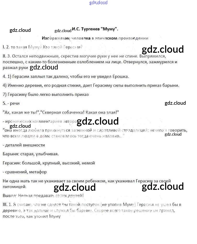 Ответ на задание И.С. Тургенев. Муму. Изображение человека в эпическом произведении Рабочая тетрадь Литература за 6 (шестой) класс Бунеев, Бунеева, Чиндилова Школа 2100 2015