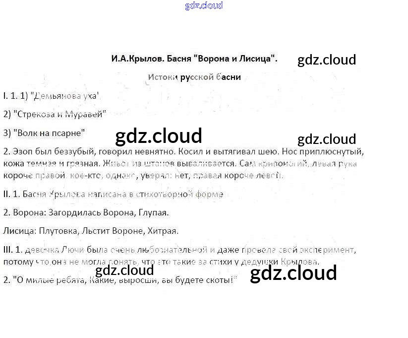 Ответ на задание И.А. Крылов. Басня Ворона и Лисица. Истоки русской басни Рабочая тетрадь Литература за 6 (шестой) класс Бунеев, Бунеева, Чиндилова Школа 2100 2015