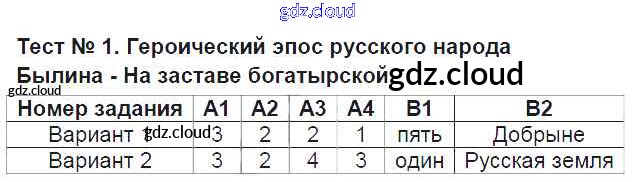 Ответ на задание Тест №1. Героический эпос русского народа Контрольно-измерительные материалы (КИМ) Литература за 6 (шестой) класс Королева 2015