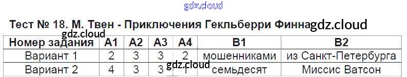 Ответ на задание Тест №18. Приключения Гекльберри Финна Контрольно-измерительные материалы (КИМ) Литература за 6 (шестой) класс Королева 2015