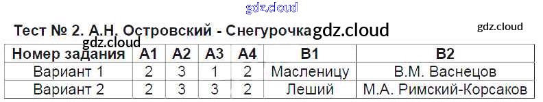 Ответ на задание Тест №2. Снегурочка Контрольно-измерительные материалы (КИМ) Литература за 6 (шестой) класс Королева 2015