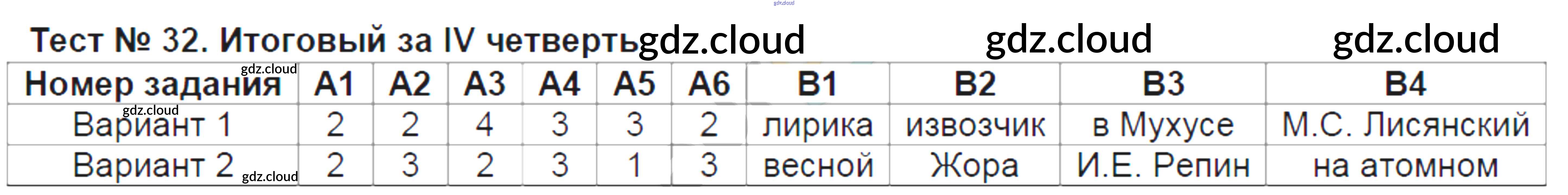 Ответ на задание Тест №32. Итоговый за IV четверть Контрольно-измерительные материалы (КИМ) Литература за 6 (шестой) класс Королева 2015