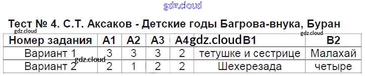 Ответ на задание Тест №4. Детские годы Багрова-внука, Буран Контрольно-измерительные материалы (КИМ) Литература за 6 (шестой) класс Королева 2015