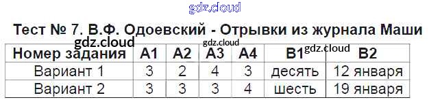 Ответ на задание Тест №7. Отрывки из журнала Маши Контрольно-измерительные материалы (КИМ) Литература за 6 (шестой) класс Королева 2015