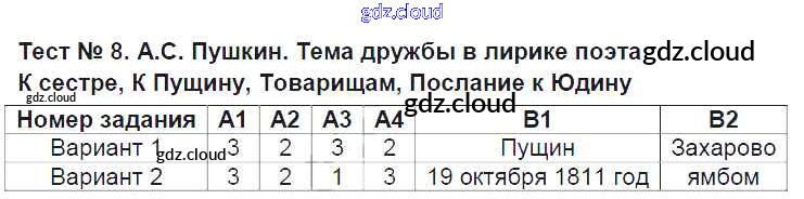 Ответ на задание Тест №8. Тема дружбы в лирике поэта Контрольно-измерительные материалы (КИМ) Литература за 6 (шестой) класс Королева 2015