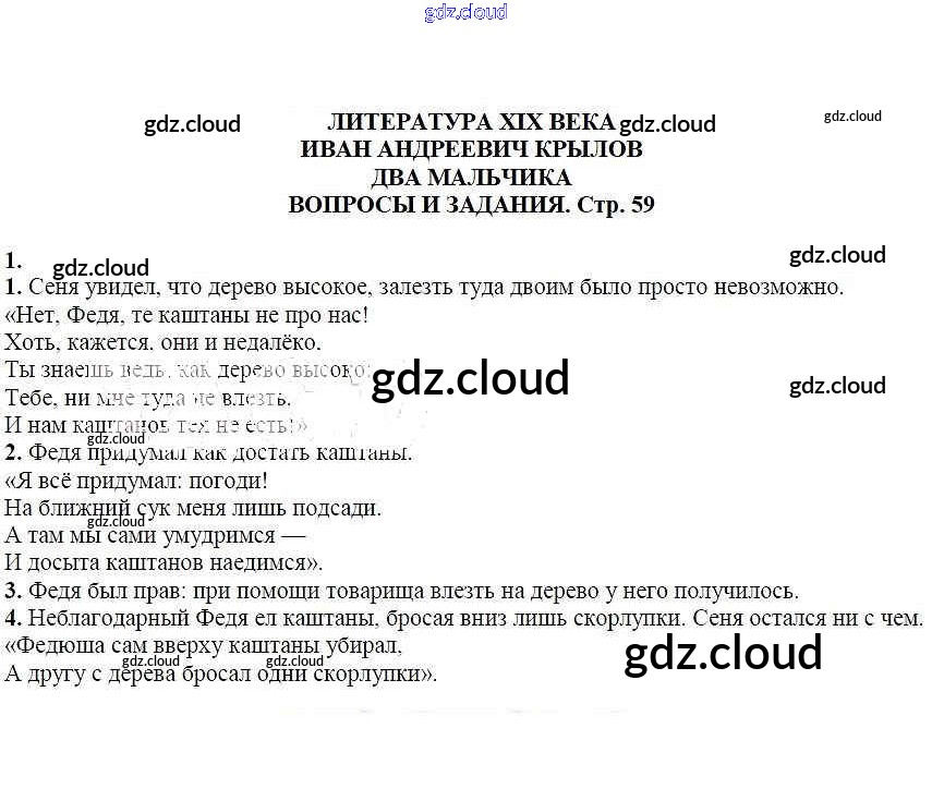 Вопросы и задания Литература XIX века. Иван Андреевич Крылов. Два мальчика по Литературе 6 класс Учебник-хрестоматия Курдюмова Вертикаль Часть 1, 2 Дрофа