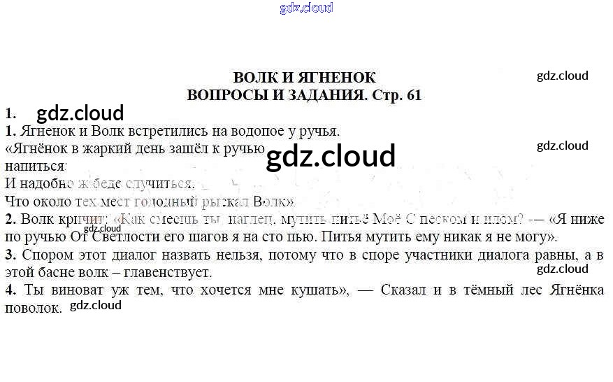 Вопросы и задания Волк и ягненок по Литературе 6 класс Учебник-хрестоматия Курдюмова Вертикаль Часть 1, 2 Дрофа