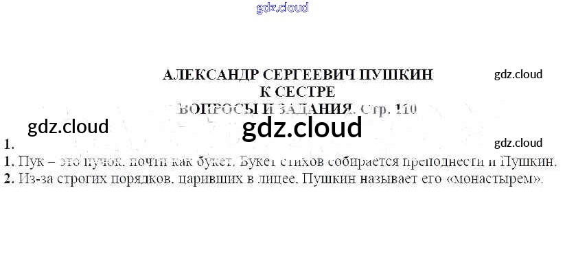 Вопросы и задания Александр Сергеевич Пушкин. К сестре по Литературе 6 класс Учебник-хрестоматия Курдюмова Вертикаль Часть 1, 2 Дрофа